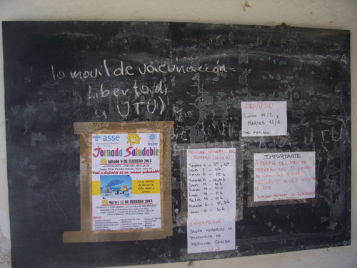 R 1, Km 61. Policlínica Comunitaria. Buen trabajo con la Junta Local , Cubre una vasta zona de aproximadamente 1200 habitantes con mas de 700 Historias Clínicas de ASSE.